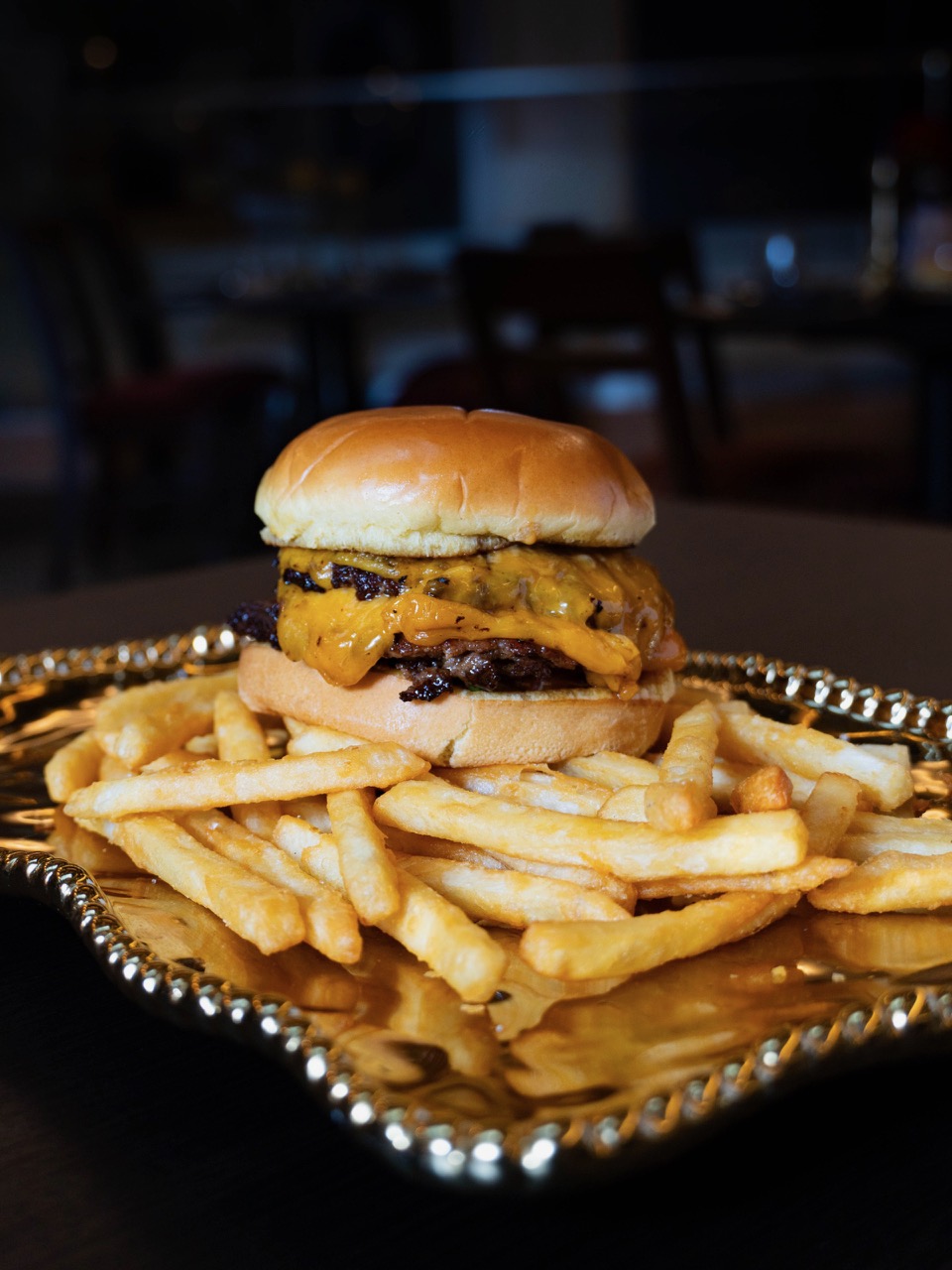 Pan brioche ligeramente tostado, doble carne sellada al estilo smash, queso americano fundido, relish de bacon y chorizo tableño, vegetales frescos y salsa Smoked Korean. Servida con papas a la francesa crujientes.